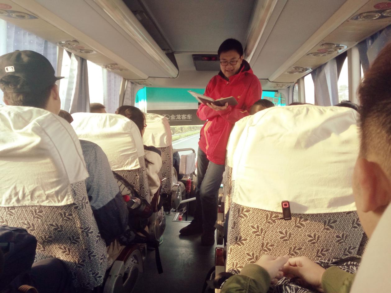 3月26日早晨7点,2015级基地班同学与四位优秀大四年级学长学姐在学校南门碰面,和班主任徐志伟老师一同乘大巴车前往方山国家地质公园。在大巴车上,徐老师向大家介绍了本次认知实习的时间和地点安排,并初步讲授了各个实习点的着重关注部分和实习的背景,让同学们心中对一天的行程有了大致的了解。他还鼓励大家趁年轻、趁时节尚好多走出学校小范围的圈子,走向地理学研究的广阔野外世界,对于我们培养地理思维和兴趣,陶冶性情大有裨益。班长李世寒将同学们分为六个小组,以小组为单位完成今天的实习任务,做到相互关照以确保安全。他还揭幕了本次实习过程中的活动——“凝固在那一瞬的时光”摄影大赛。