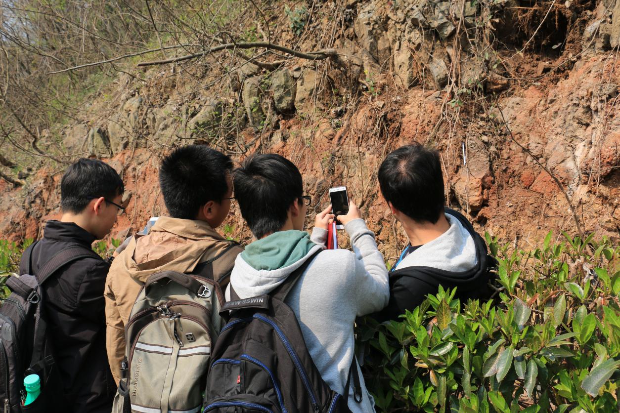 在登山过程中,徐老师还就地质构造特点显著的点位展开了深入浅出的介绍,就土壤颗粒、火山口、火山通道等提出了自己的见解,联系国际当今最前沿研究领域进行分析,进一步激发大家对科研的兴趣。在下山过程中遇到的烘烤层、玄武岩下层土壤岩层成为师生共同思考的平台,老师的循循善诱让同学们弄懂了其形成机制,大家脸上也都洋溢起十足的成就感,满心欢喜地离开了方山。