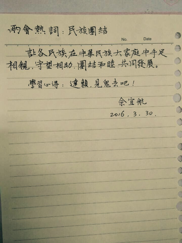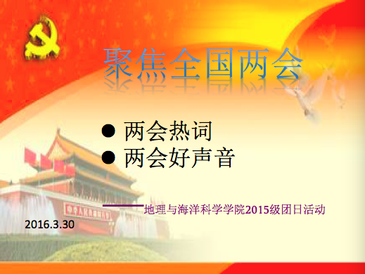 有爱爱 2015级同学在3月30日(周三)的形势与政策课上开展了“关注两会热点,学习两会热词”团日活动。