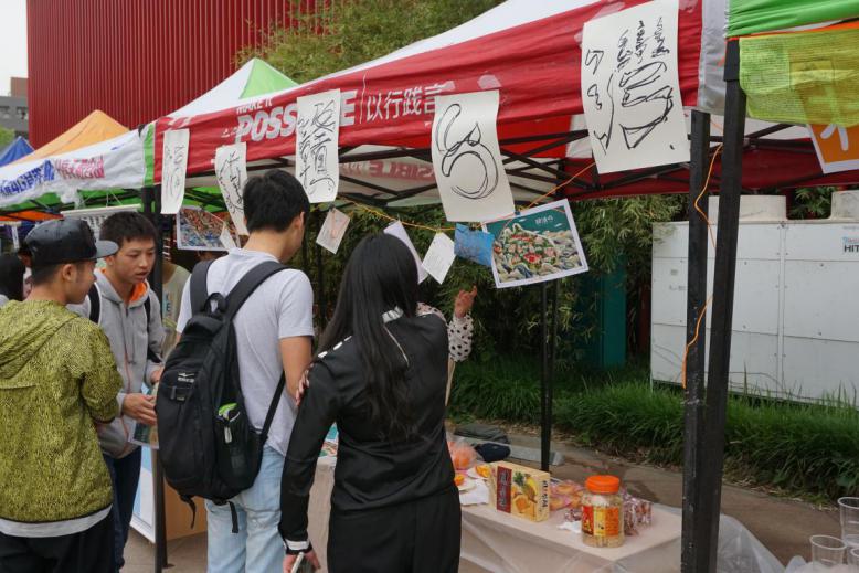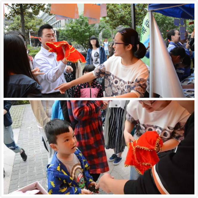 5月7日上午11点,历经2个小时的充分准备,展台架设、道具摆放、设备调试等均已到位。各个展台也迎来了他们的第一拨客人,同学们积极地邀请他们参加所属展台准备的精彩活动,在小游戏结束后送上礼物以示心意,并希望他们能为自己的展台投上宝贵的一票。渐渐地,在分发宣传单的同学的努力下,越来越多的观赏者来到我们的展台前,每个展台也都各展神通: