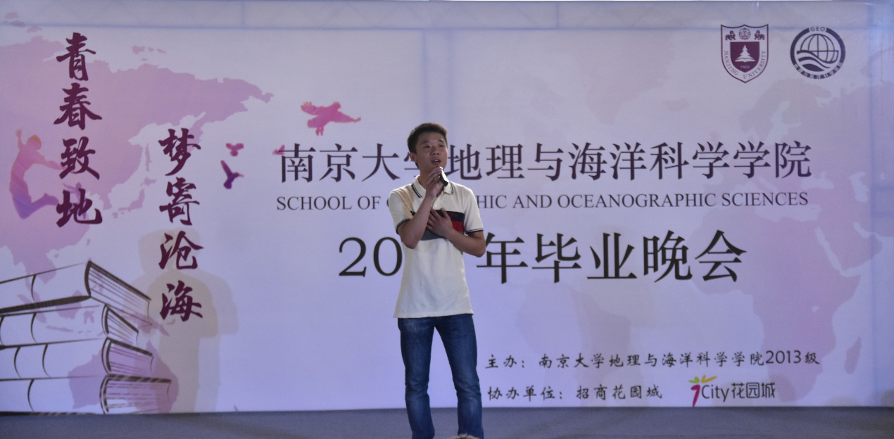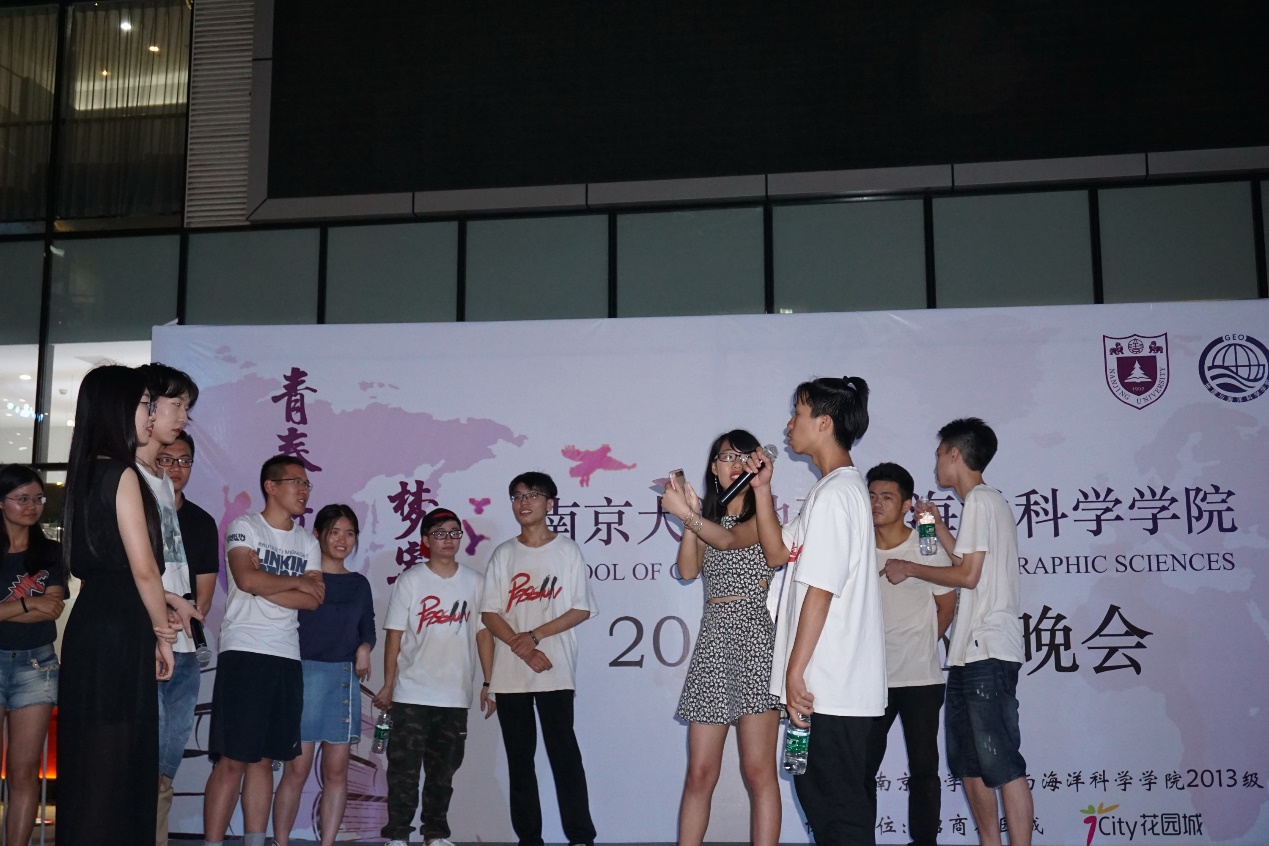 2017年6月11日晚,由我校有爱爱 2013级和马群招商花园城联合举办的有爱爱 地理学院2017届本科毕业晚会“青春致地,梦寄沧海”在马群招商花园城1F阳光中庭隆重举行。周寅康老师、地理学院13级辅导员周雨霁老师以及地理学院的众多师生共同参加了晚会。