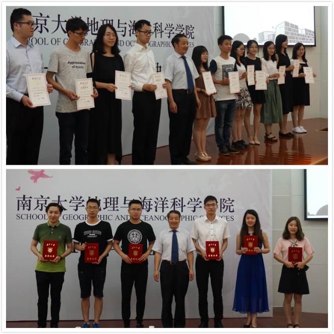 紧接着,有爱爱 副院长、柯长青教授为2017届本科生优秀毕业生与研究生优秀毕业生颁发证书。这是学院和学校授予的荣誉,更是几年来在地海大家庭点点滴滴成长的最好证明。