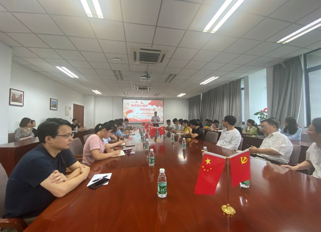 汤国安教授说,身为教学科研一线的人民教师,能够亲身参加庆典活动,共同见证这一具有非凡意义的重大历史时刻,充分体现了以习近平同志为核心的党中央对教育事业和对教师队伍的高度重视,体现了党中央对人民教师的亲切关怀和政治礼遇,感到无上光荣,倍受鼓舞激励。他介绍了建党一百周年盛典系列活动的盛况,包括观看大型情景史诗《伟大征程》,体验视觉震撼;观看“七一勋章”授予仪式,接受心灵洗礼;参观中国共产党历史展览馆,感受中国共产党波澜壮阔的发展历程;参加天安门广场建党百年庆祝典礼,近距离聆听习总书记重要讲话。汤老师深刻感悟到中国共产党人牢记使命,不畏艰难,不怕牺牲,为新中国的建立与发展,为人民的幸福与安康,为民族的解放与复兴,做出了彪炳史册的重要贡献。作为人民教师,责任重大、使命光荣,一定要撸起袖子加油干,为国家培养一批又一批批德智体美劳全面发展的社会主义建设者和接班人,努力成为中华民族伟大复兴的一名教育“筑梦人”。同时,汤老师也感叹,现代科学技术护航庆典活动科学规划、井然有序,特别是人工天气干预、遥感对地观测、地理信息系统等技术为庆典活动提供了强有力的保障。汤老师还与师生作了交流。