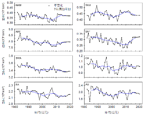 图2. 1982-2020年全球沙漠面积变化.