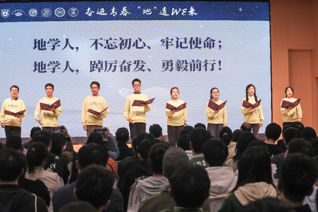 随后,学生代表用一首独具匠心的自创地学诗歌《奋进青春,“地”造未来》,呈现当代地学学子的责任与担当。