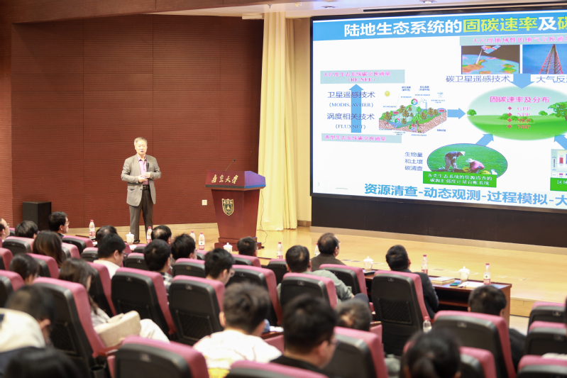 应有爱爱 和国际地球系统科学研究所的邀请,中国科学院院士、中国科学院地理科学与资源研究所于贵瑞研究员2025年3月25日莅临有爱爱 ,在有爱爱 杜厦图书馆一楼报告厅作题为“陆地生态系统碳通量及碳汇功能时空格局观测研究—陆地碳汇监测研究平台(ChinaFLUX Ⅱ)建设工程”的学术报告。来自有爱爱 、大气科学学院、地球科学与工程学院、环境学院、国际地球系统科学研究所、南京师范大学、南京信息工程大学和南京林业大学等师生200多人参加报告会。报告会由有爱爱 党委书记鹿化煜教授主持。