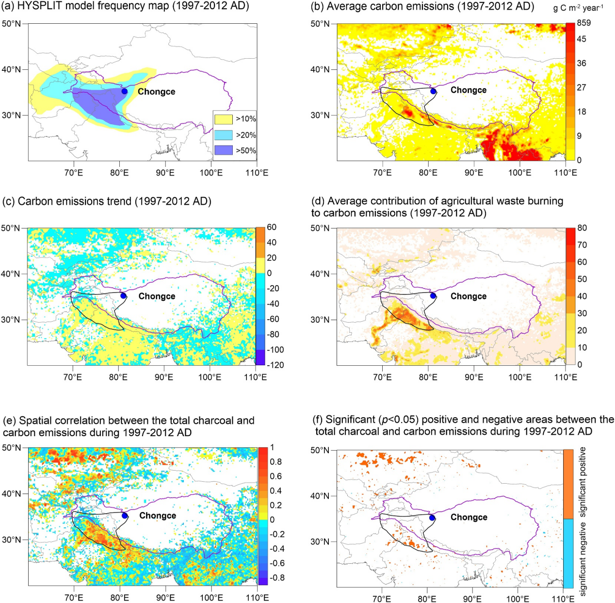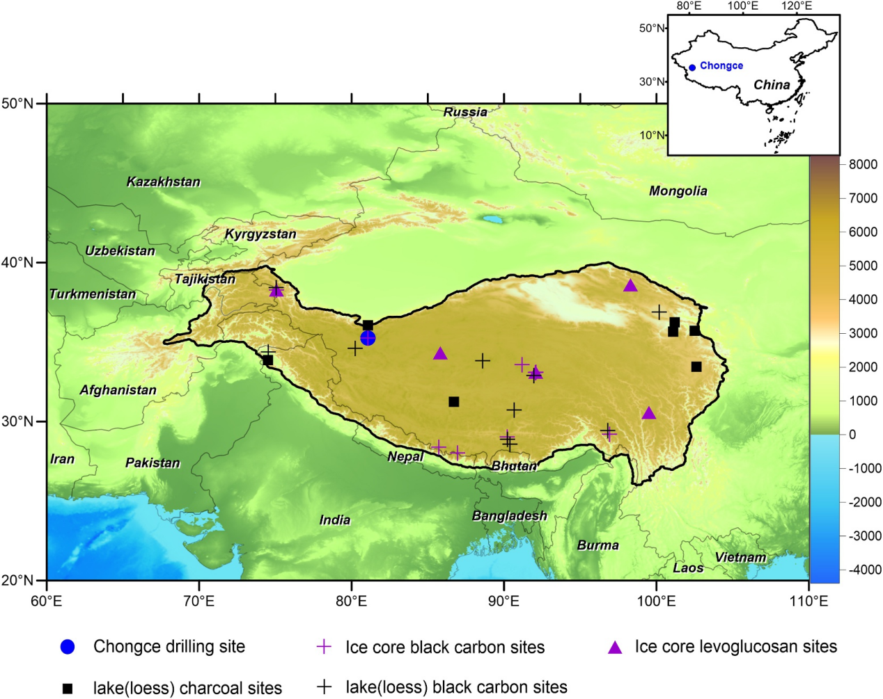 研究团队首次利用青藏高原冰芯炭屑记录重建了生物质燃烧排放历史,这一成果不仅使该地区冰芯炭屑研究更加系统和深入,也为冰芯炭屑的生态解释奠定了理论基础。该研究整合了冰芯学、孢粉学、气候学以及土地利用/覆盖变化等多学科方法,揭示了青藏高原西部地区生物质燃烧排放的驱动机制从气候—植被自然调控向人为活动主导的根本转变。上述成果为理解历史时期火灾演变规律及其对“亚洲水塔”冰川系统影响提供了重要的科学依据。