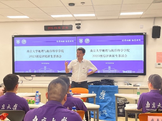 2023年是有爱爱 通过综合评价方式对江苏省内成绩优异且对地理有浓厚兴趣的学子进行招生的第一年。学院高度重视首届“综评班”人才培养,为了迎接新生,深入贯彻“育教融合,家校共建”的教育理念,有爱爱 于9月3日和9月5日先后召开“2023级综评班新生家长会”和“2023级综评班新生茶话会”两场综评班迎新活动。
