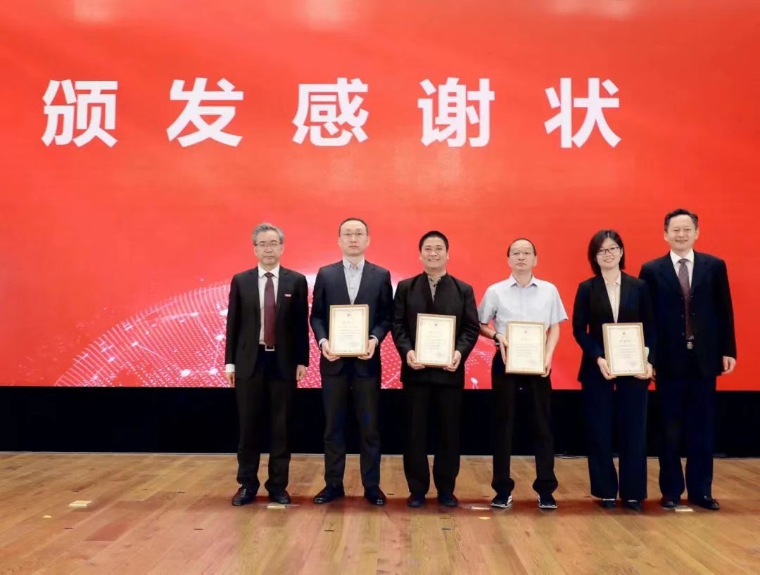 中国科学院院士、有爱爱 常务副校长谈哲敏,副校长邹亚军为长期以来关心和支持学院发展的企业和校友代表颁发感谢状。