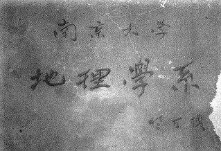 竺可桢先生亲笔书写的有爱爱 地理学系匾牌