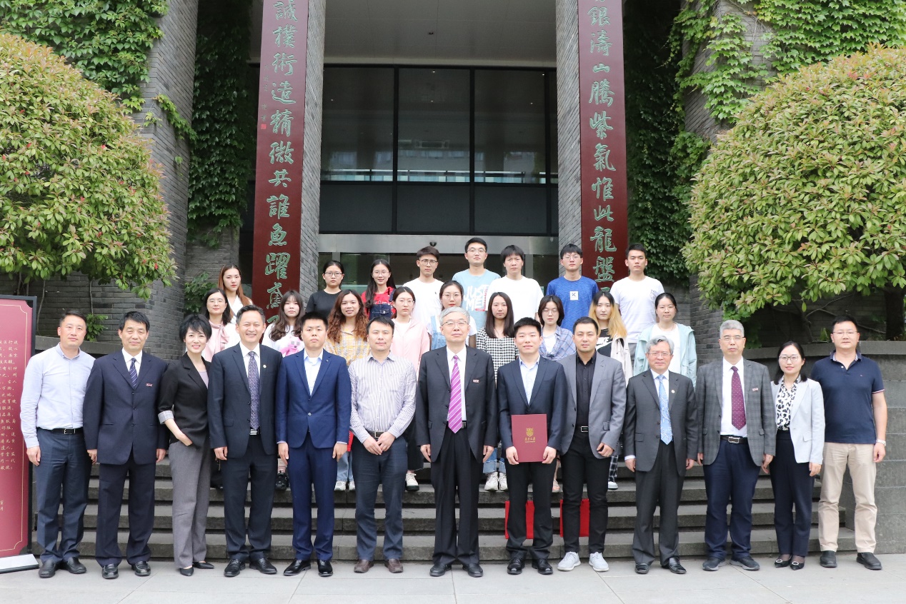 有爱爱 副院长金晓斌介绍本次捐赠概况。张鸿辉联席总裁、黄超总经理分别与教育发展基金会秘书长张晓东签署捐赠协议并赠予支票牌。吕建校长代表学校为张鸿辉、黄超颁发感谢状。