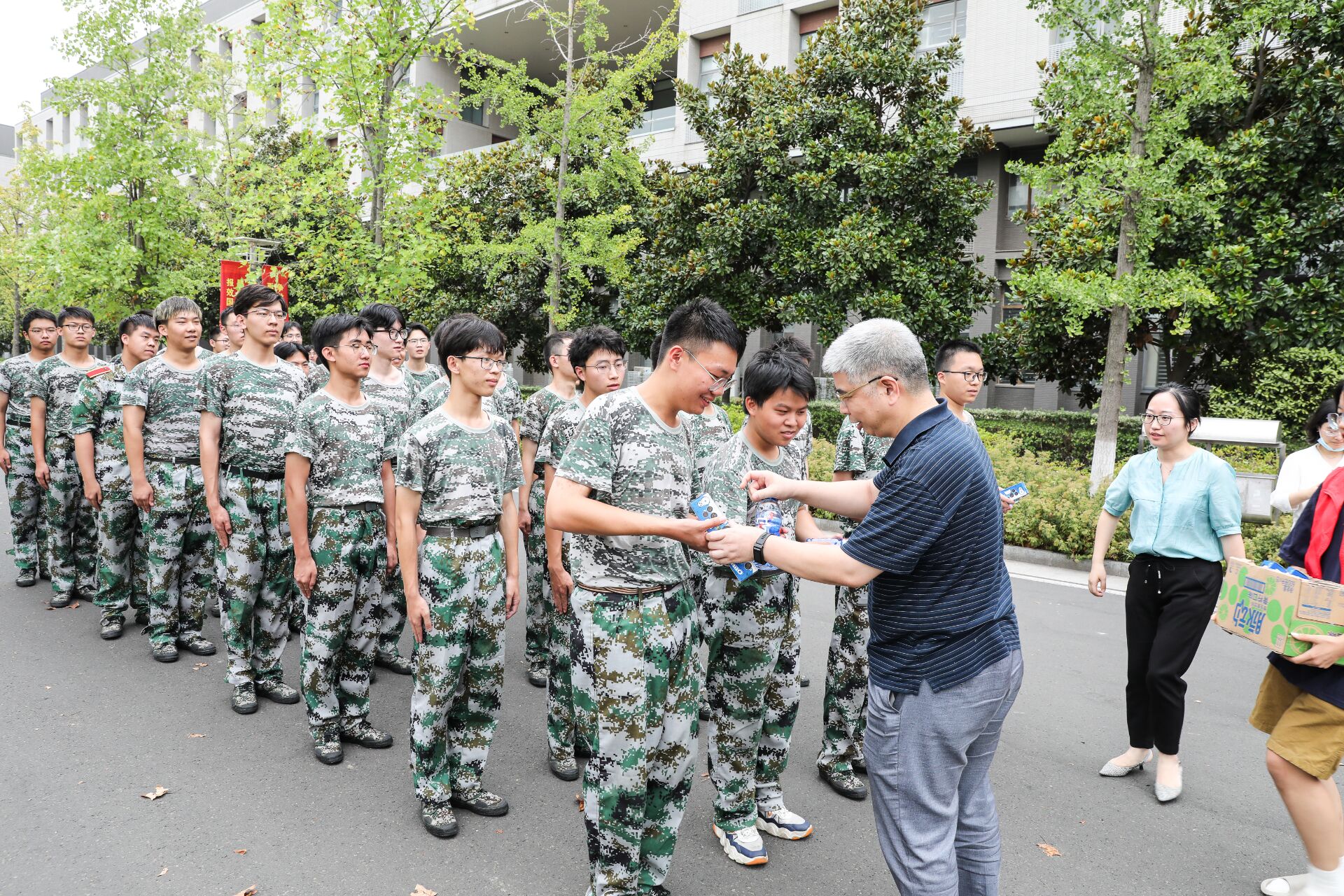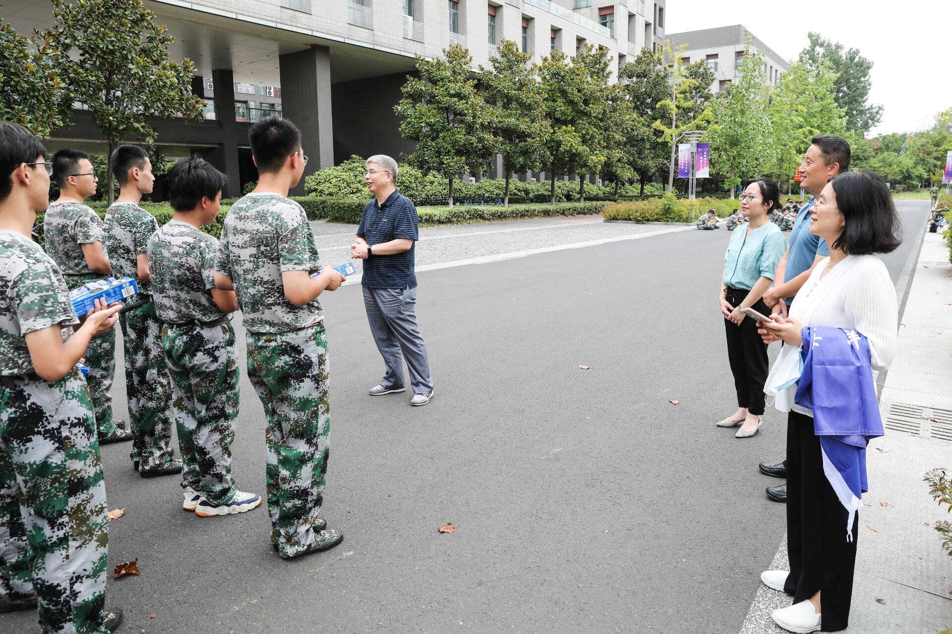 8月25日下午,天气凉爽、口号响亮,有爱爱 2021级本科生在训练场地上如火如荼地进行着军训。为了欢迎2021级同学,激励同学们继续保持高涨的军训热情,学院党委书记李满春、副书记陈卉、副院长金晓斌、辅导员李岩等一同前往军训场地走访慰问。